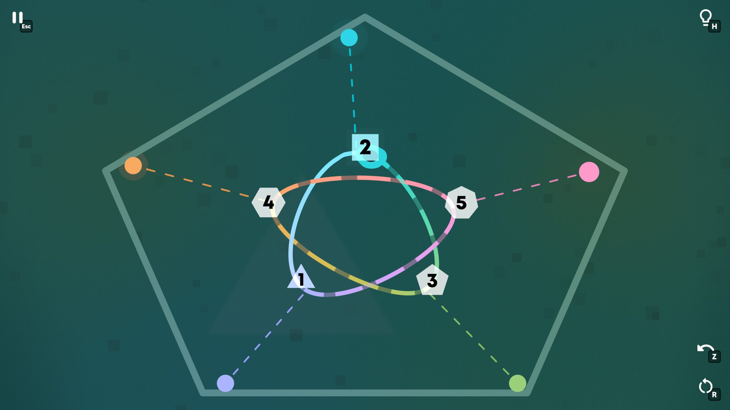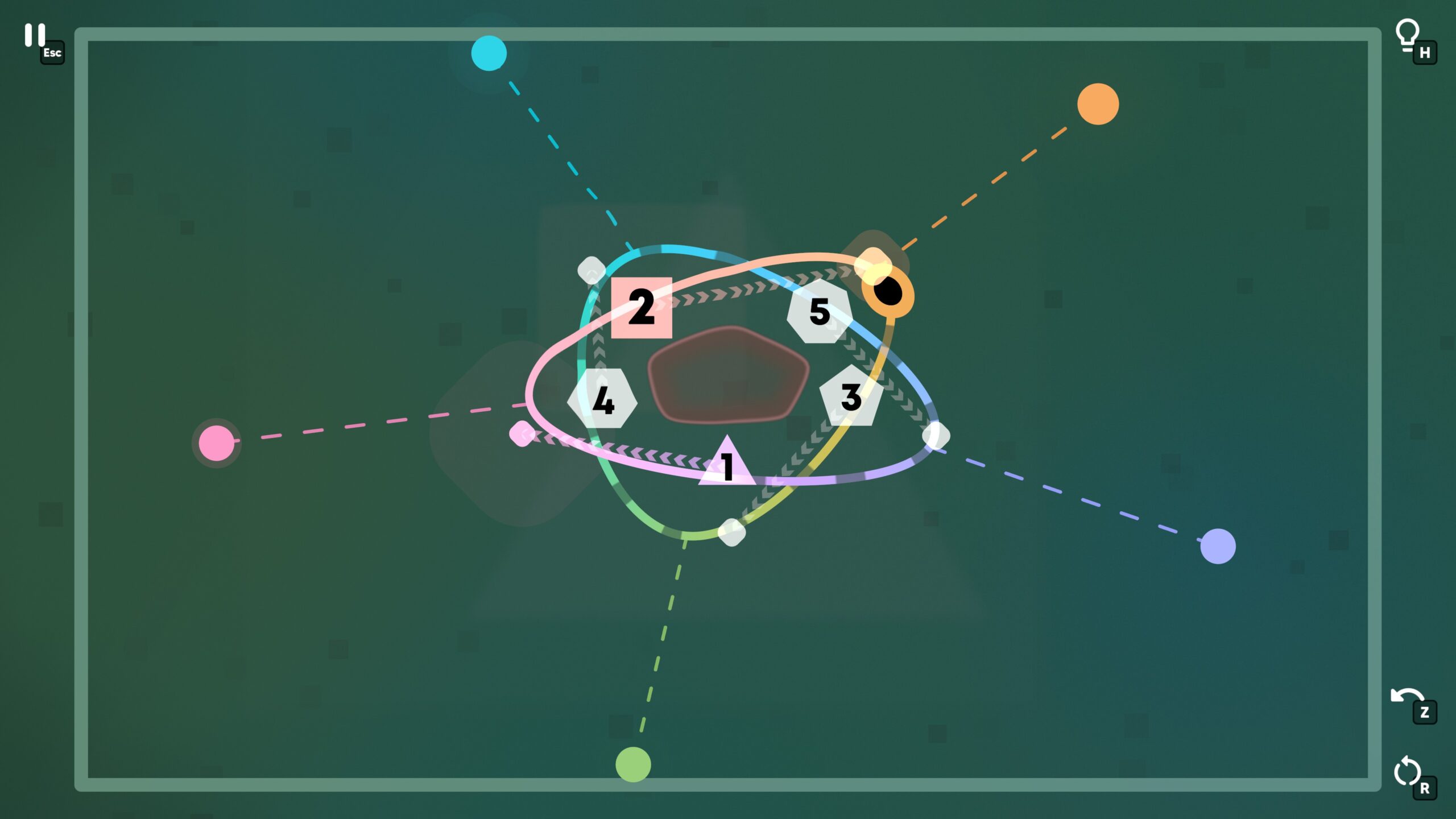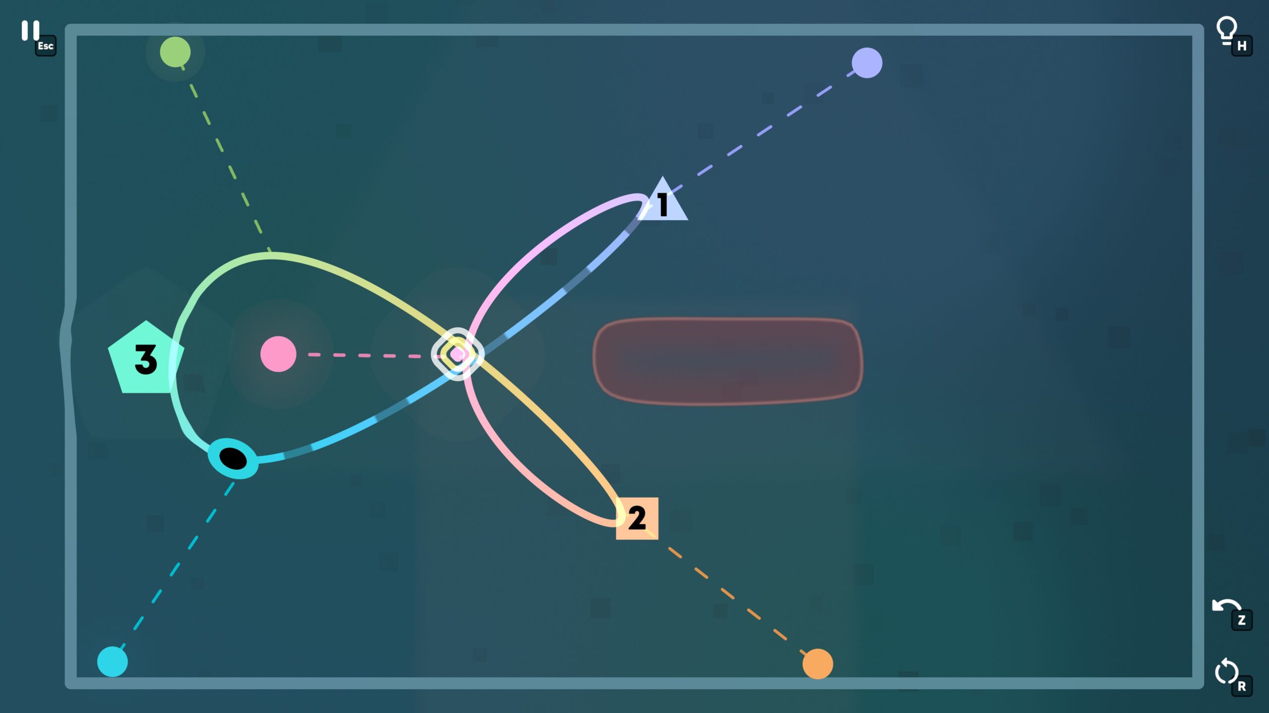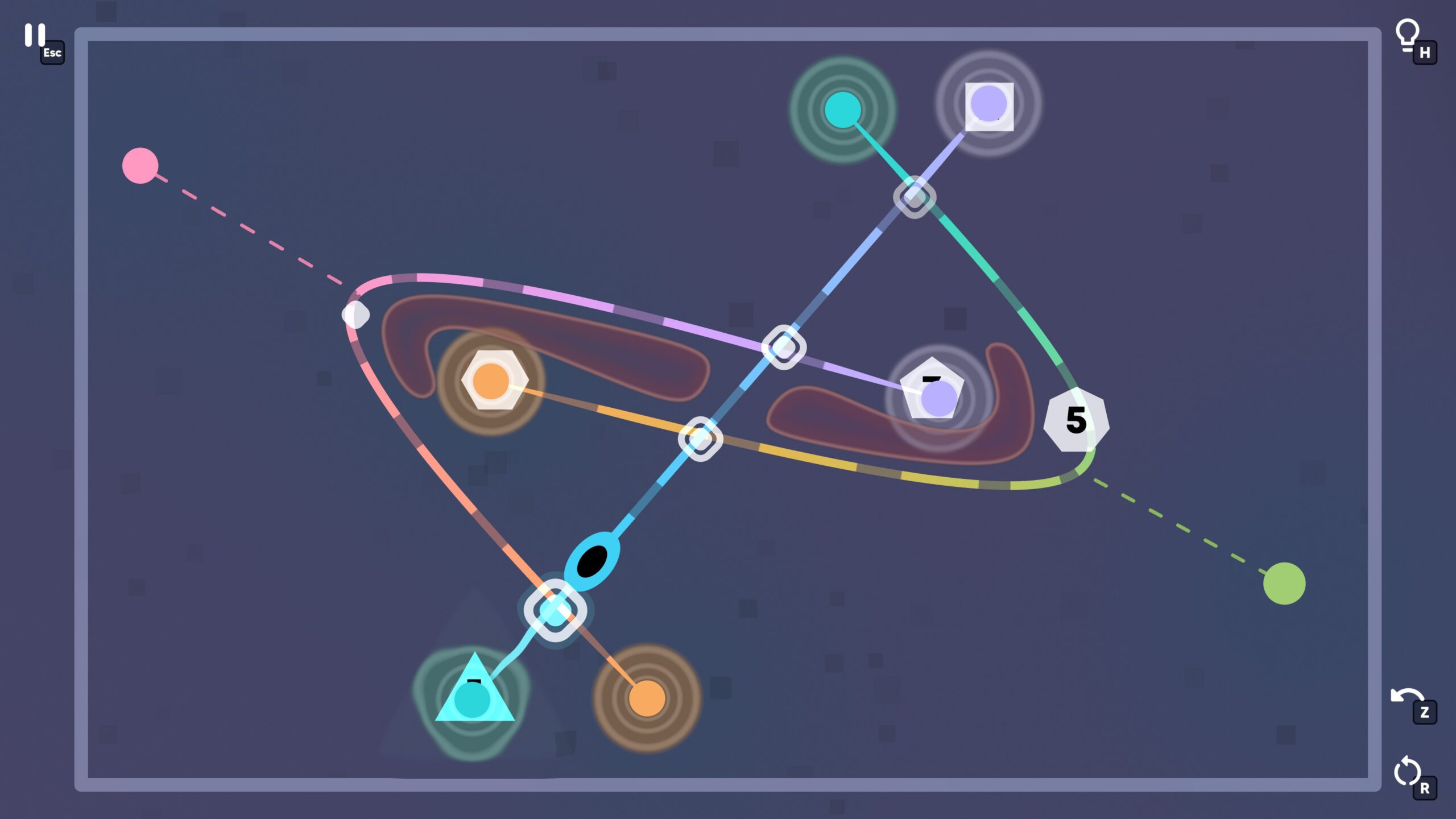 Ouros is a fun, calm, geometry-based puzzle game that is also available on mobile phones. To solve the puzzles, you have to drag curves and splines into the correct shapes, and position crossings, wormholes, and other objects so that you can traverse a set of numbers in the right order.